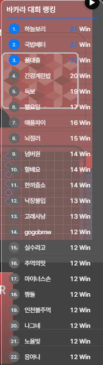 국밥배터님의 댓글 국밥배터쪽지보내기 메일보내기 자기소개 전체게시물쪽지보내기 메일보내기 자기소개 전체게시물 작성일 10.22 20:35 음 오히려 좋아 공동1등 ㅋㅋㅋ 음 오히려 좋아 공동1등 ㅋㅋㅋ