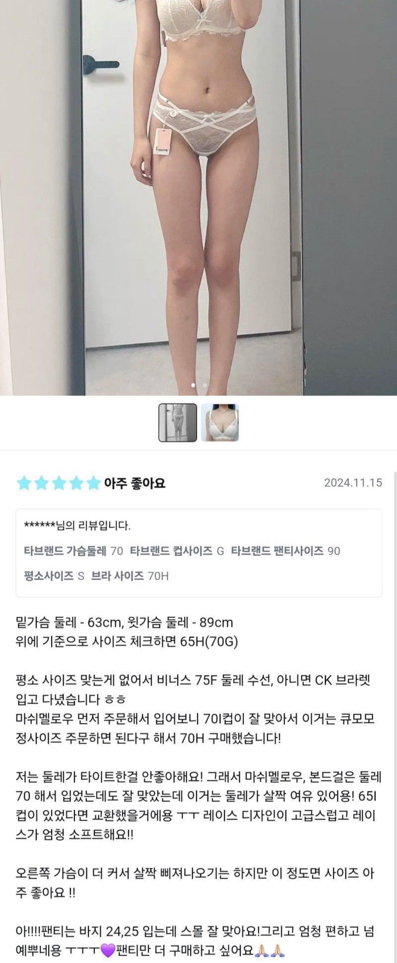 현실적인(?) 대한민국 "여자 속옷" 후기들