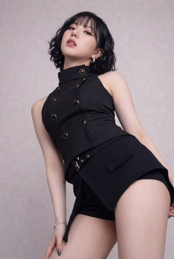 비비지 은하 가슴라인이 봉긋한 파란 반팔티 + 청미니 꿀벅지