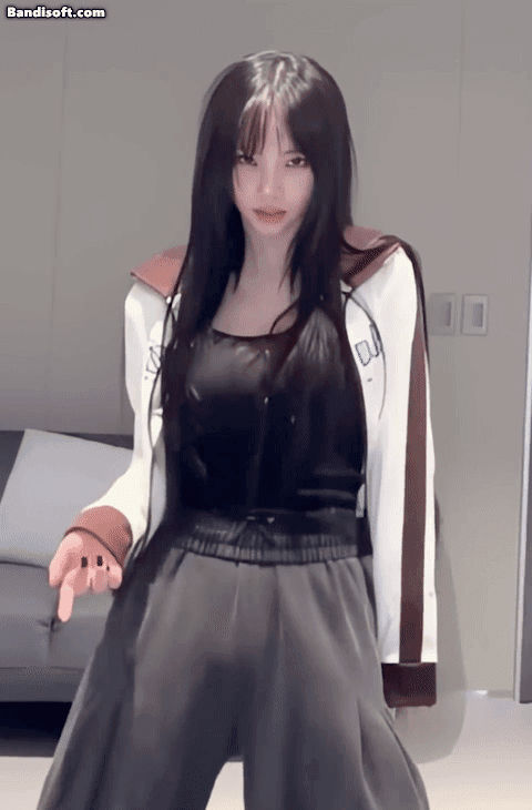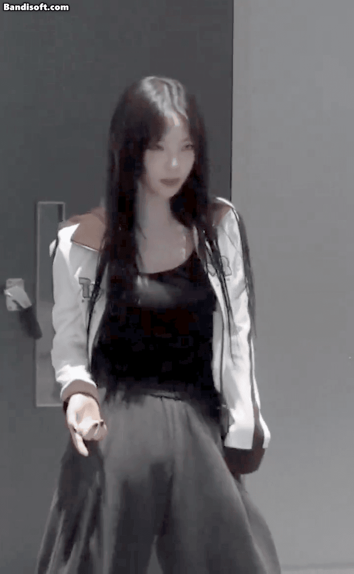 연습중인 카리나 얇은 회색 트레이닝 바지 위 은은한 라인