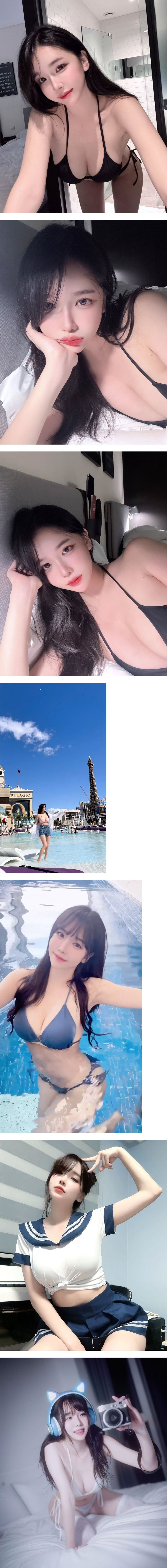 검정 끈비키니 입고 앞으로 숙여준 이아린 가슴골
