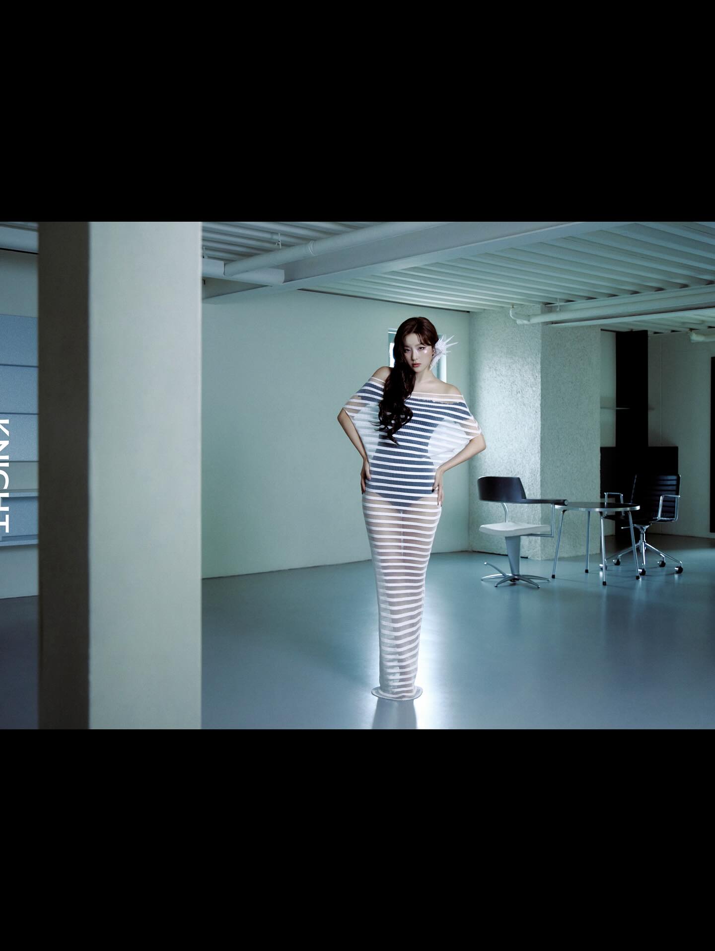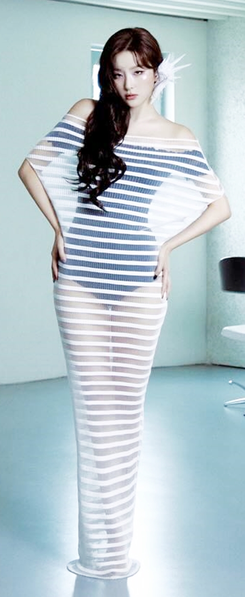 흰 스트라이프 시스루 속 검정 원피스 수영복 레드벨벳 슬기 몸매