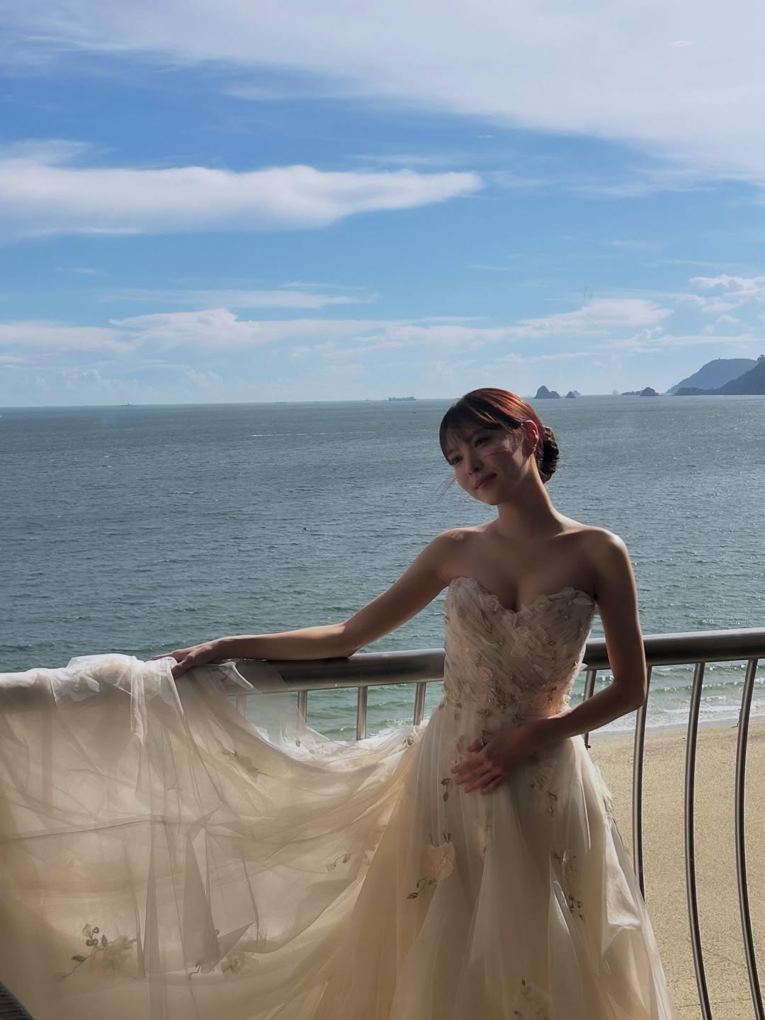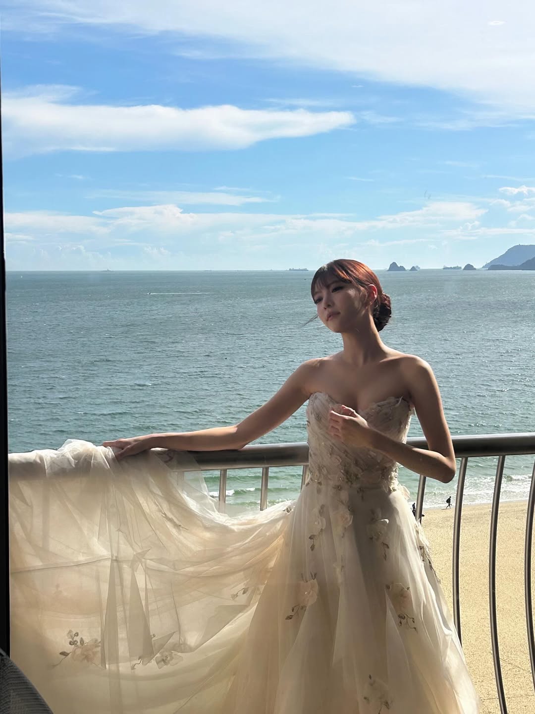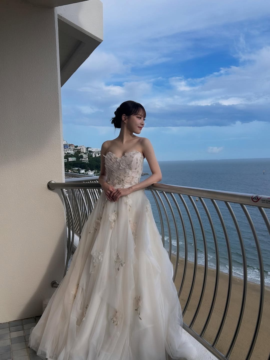 배우 이열음 호텔에서 바다 배경으로 드레스 셀카 아찔한 가슴골