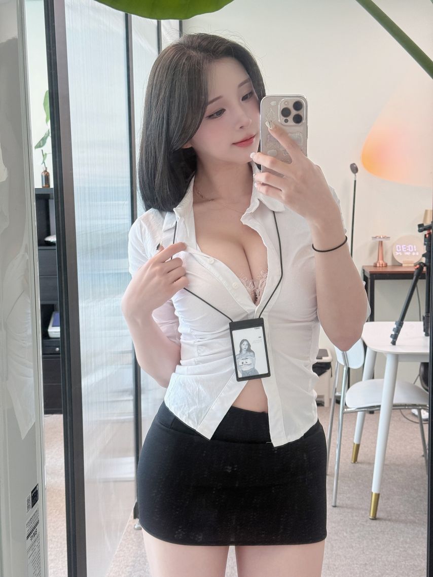 꽃빵 유혹하는 여상사 컨셉 흰 셔츠 오픈 가슴골 검스 야벅지