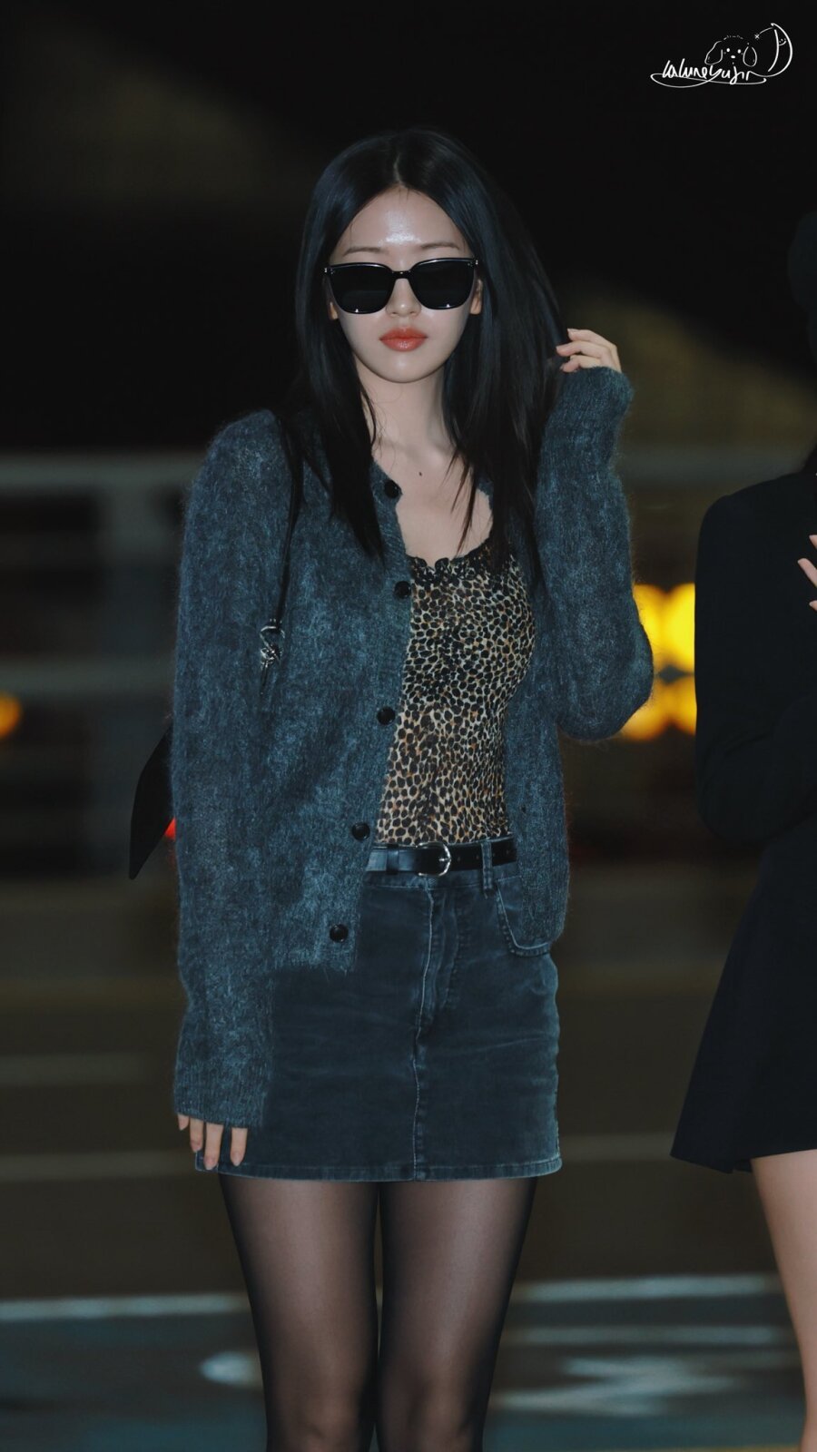브라가 은근히 비치는 호피 나시 + 초미니 검스 각선미 안유진