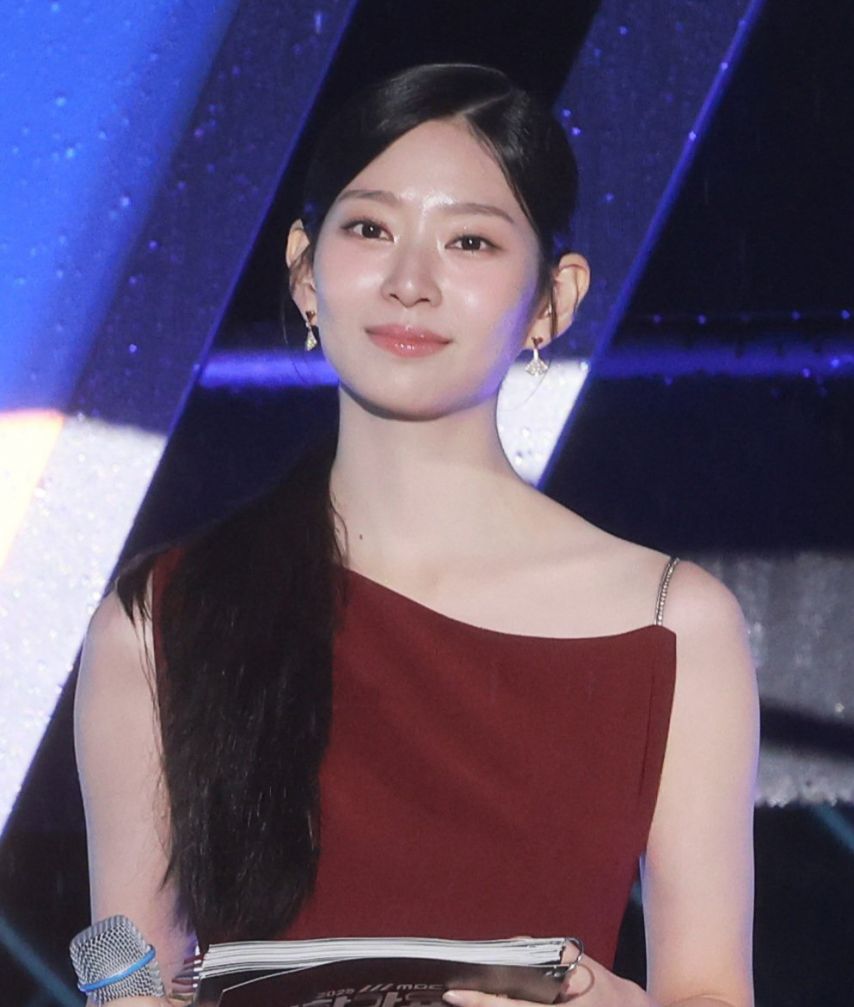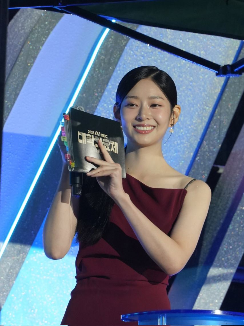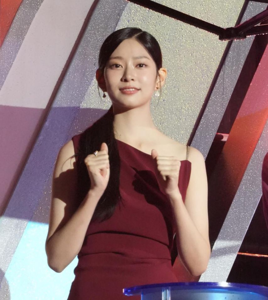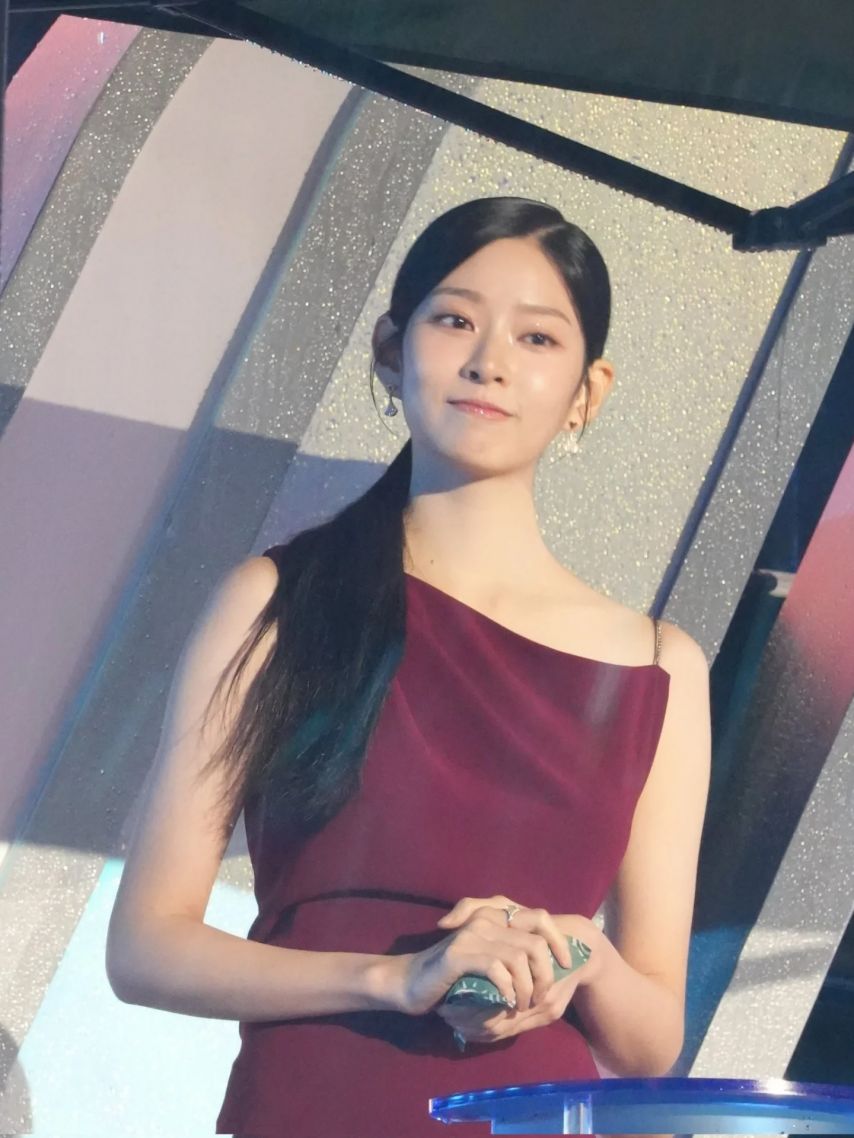 방심하다 깜짝 놀라는 김민주 와인빛 드레스 미모 (대학가요제 MC)