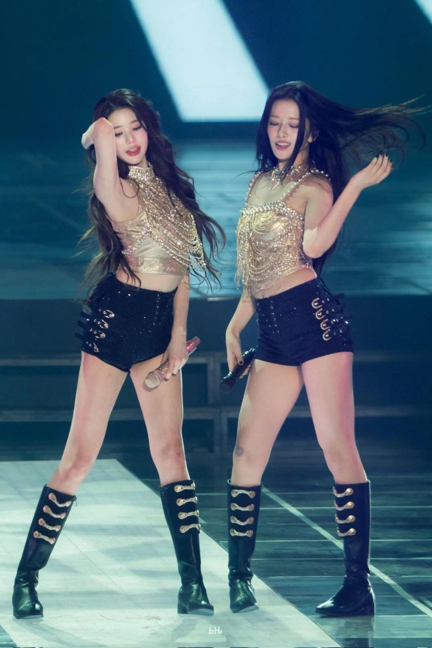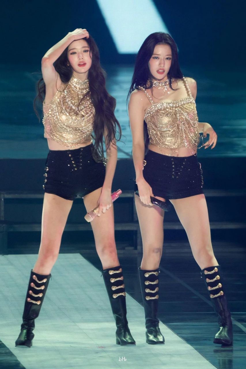 [아이브] 안유진 황금 란제리룩 검정 스트랩 핫팬츠 탄탄한 엉벅지