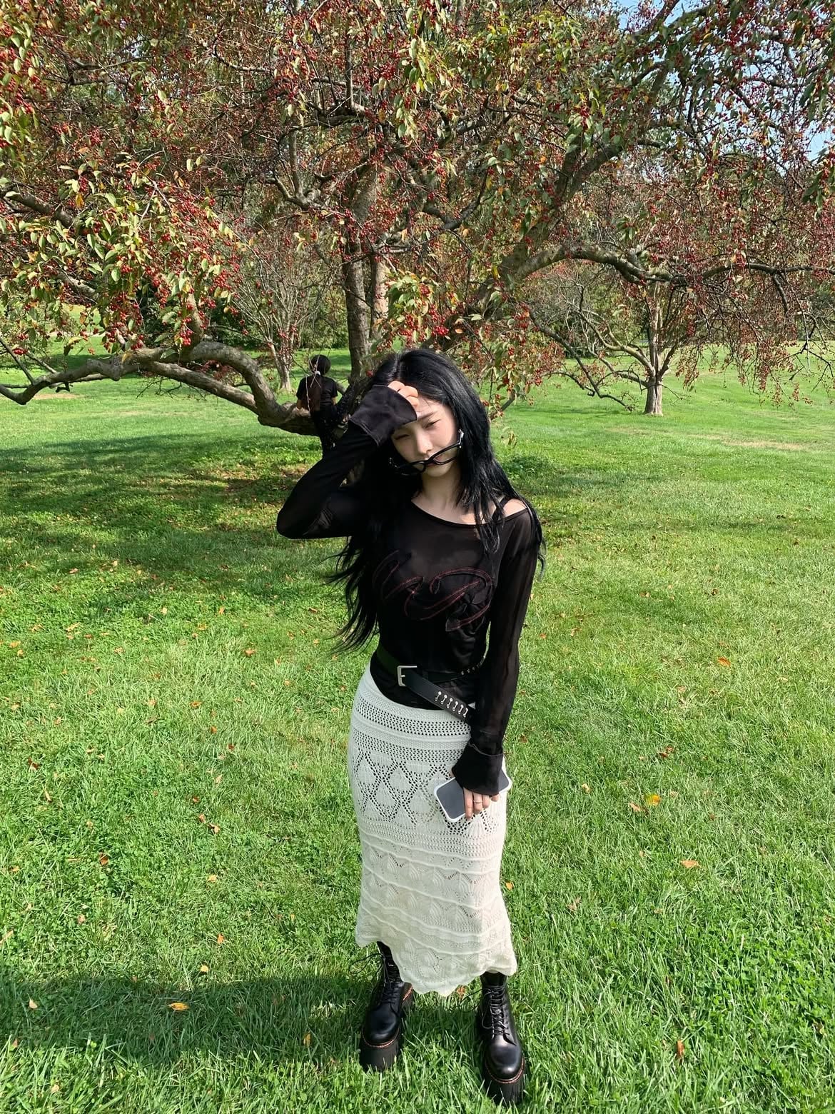 에스파 카리나 검정 시스루 긴팔...은근히 비치는 가슴골 셀카
