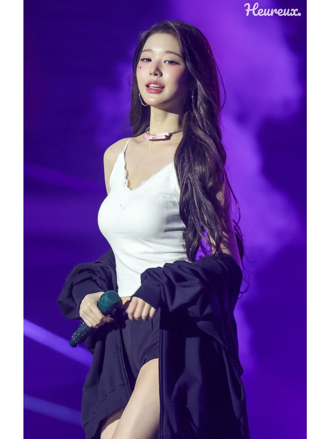 여자여자한 흰 레이스 캐미솔 입고 끼부리는 장원영 복부 배꼽