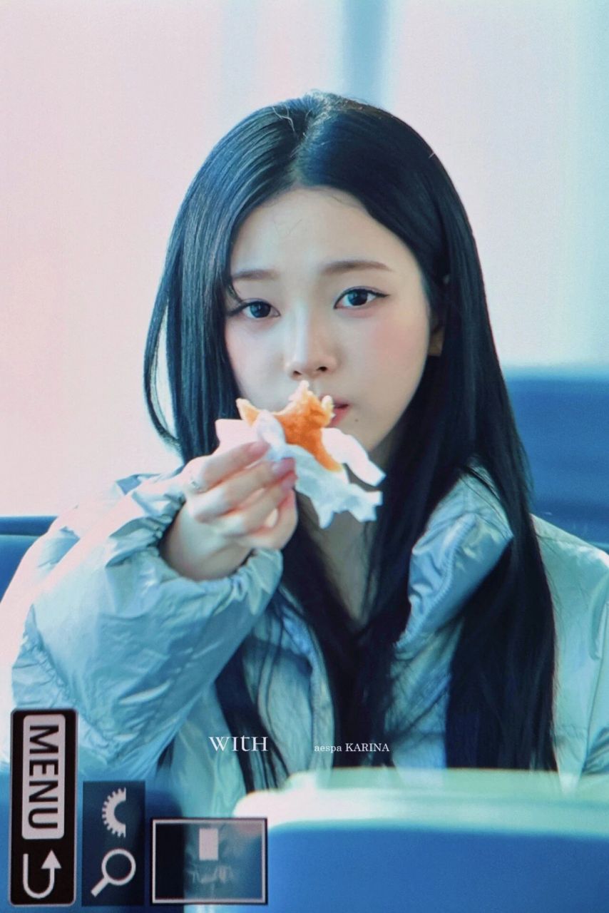 오물오물 혀까지 낼름거리며 도넛 먹는 에스파 카리나