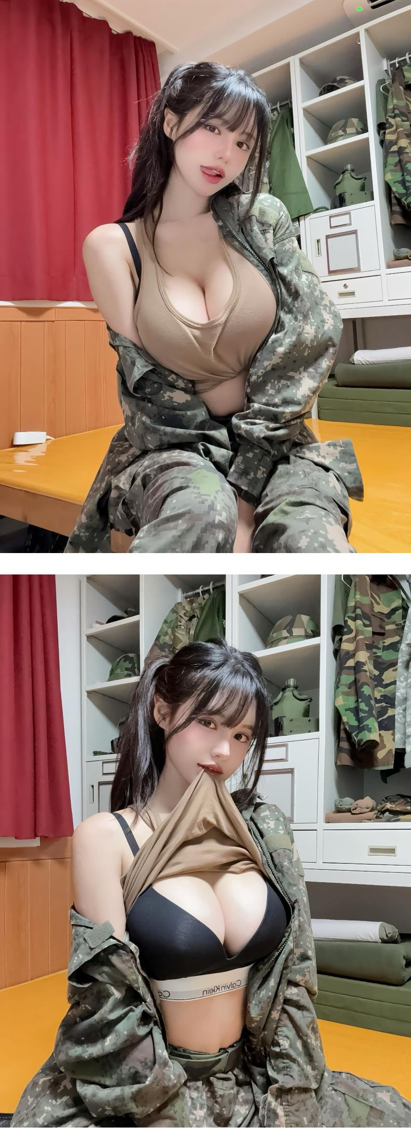 65G 서안 진짜 밀리터리룩 검정 CK 브라 가슴골 노출