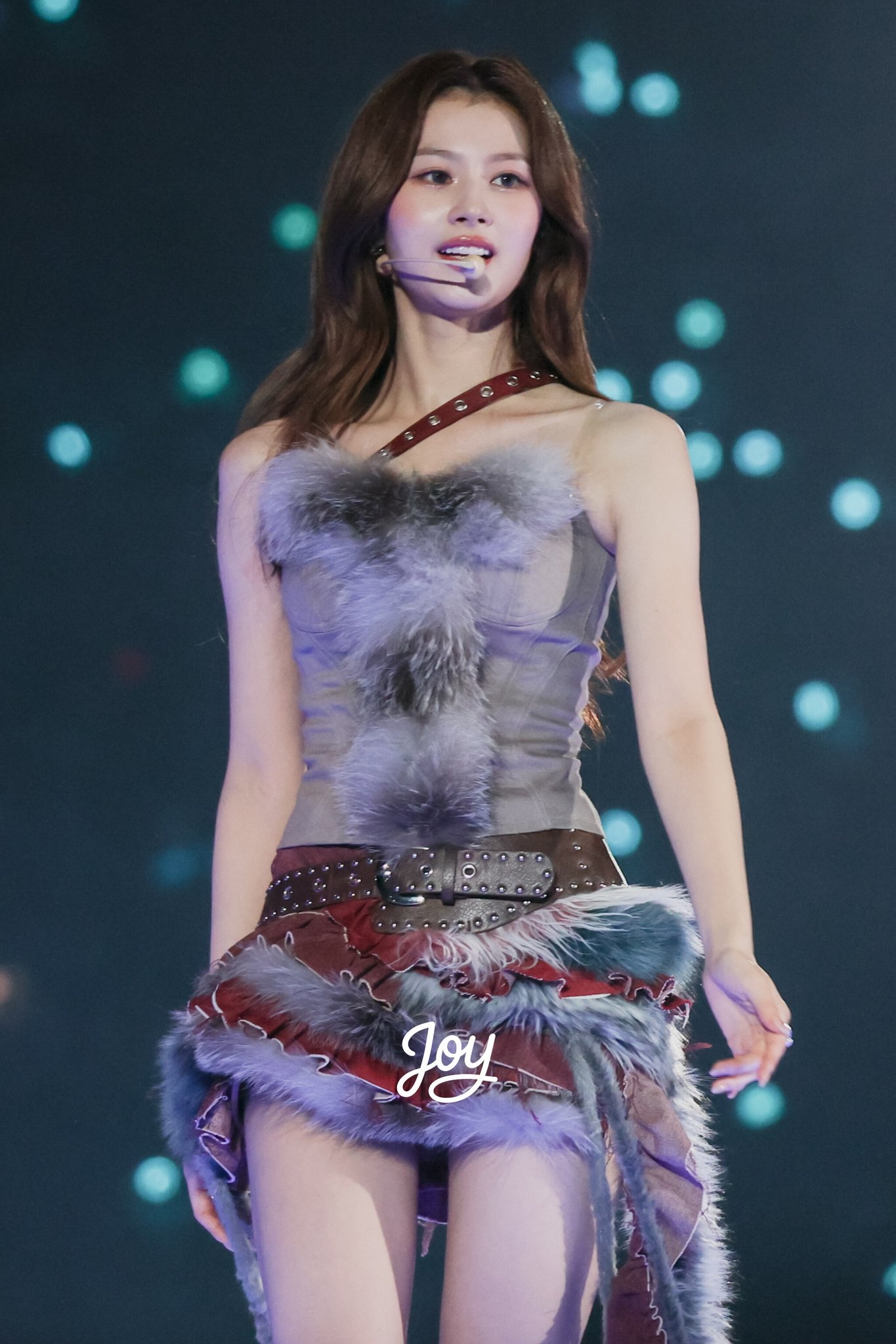 트와이스 사나 회색 털 란제리룩 + 초미니 꿀벅지 -가오슝 콘서트