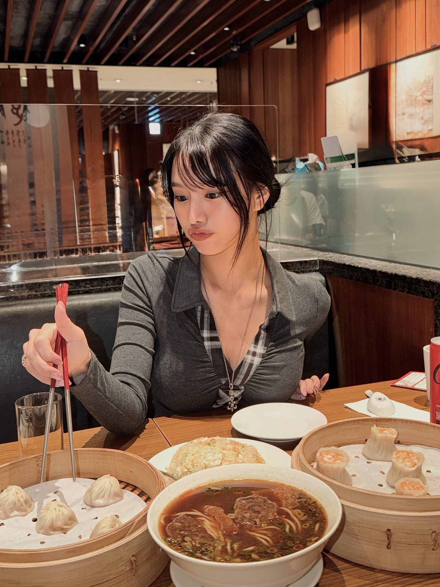 왕만두 먹는 키오프 나띠...테이블에 얹어놓은 묵직한 가슴