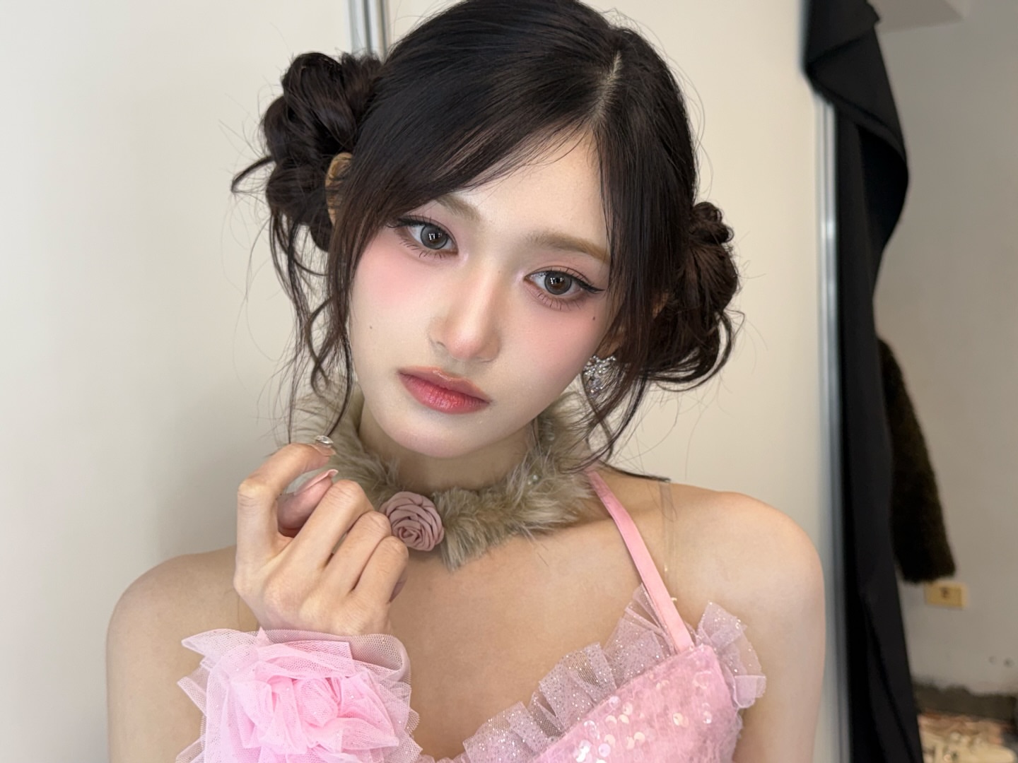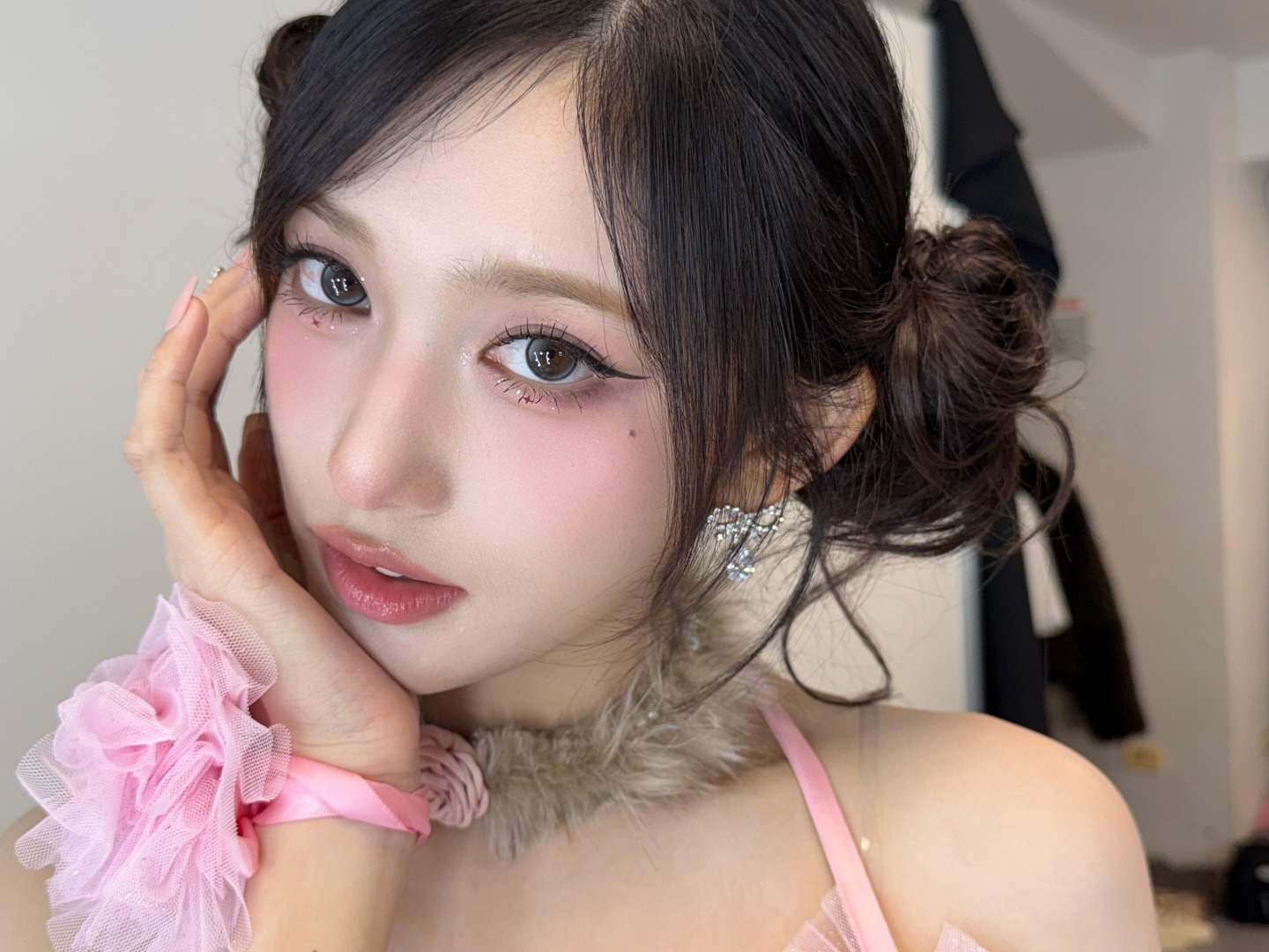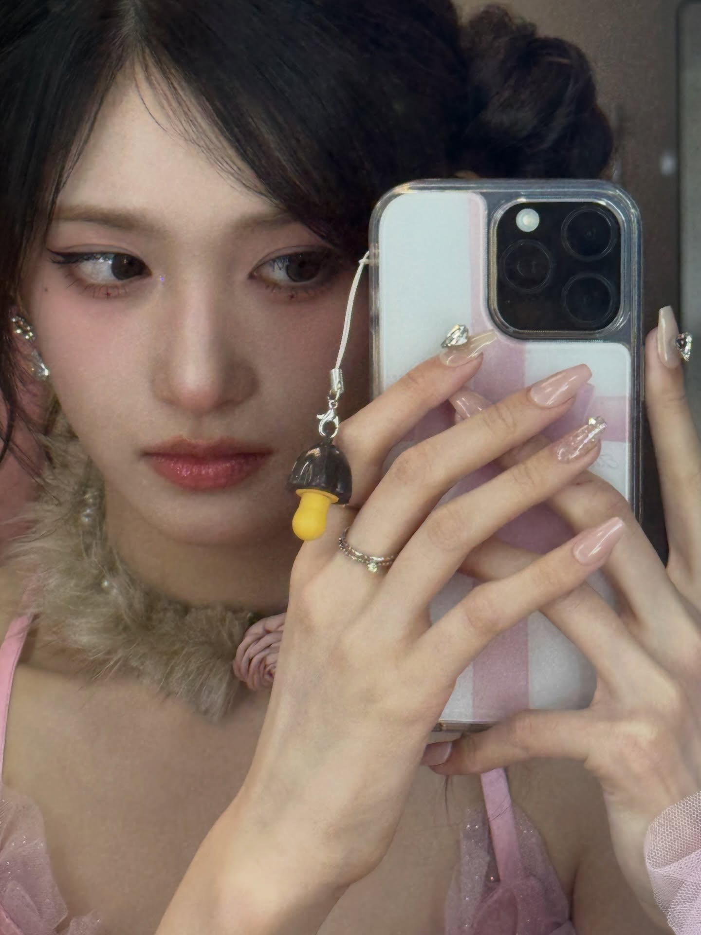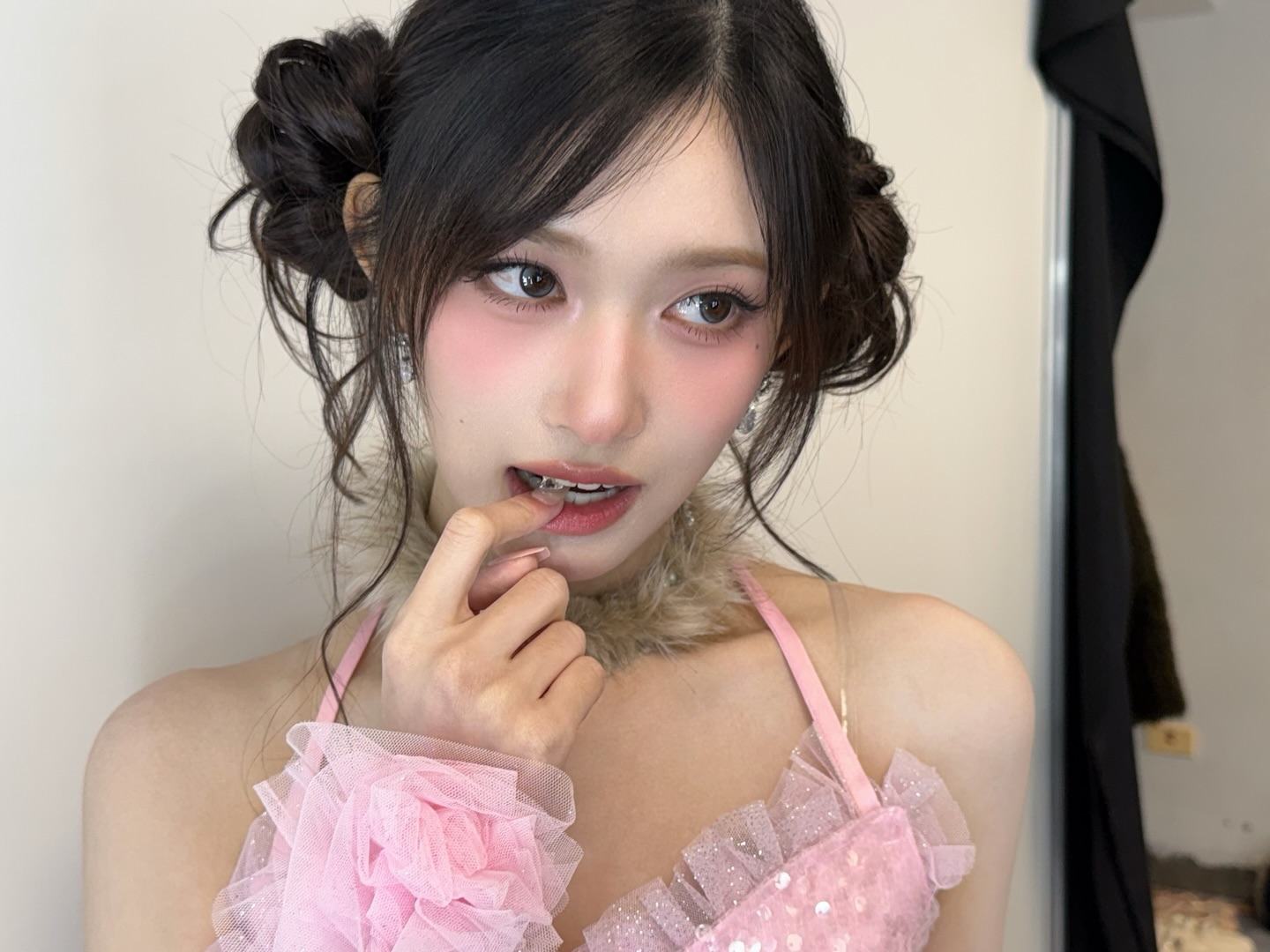 시원하게 파인 핑크 란제리룩 입고 거울셀카 뿌까머리 이서