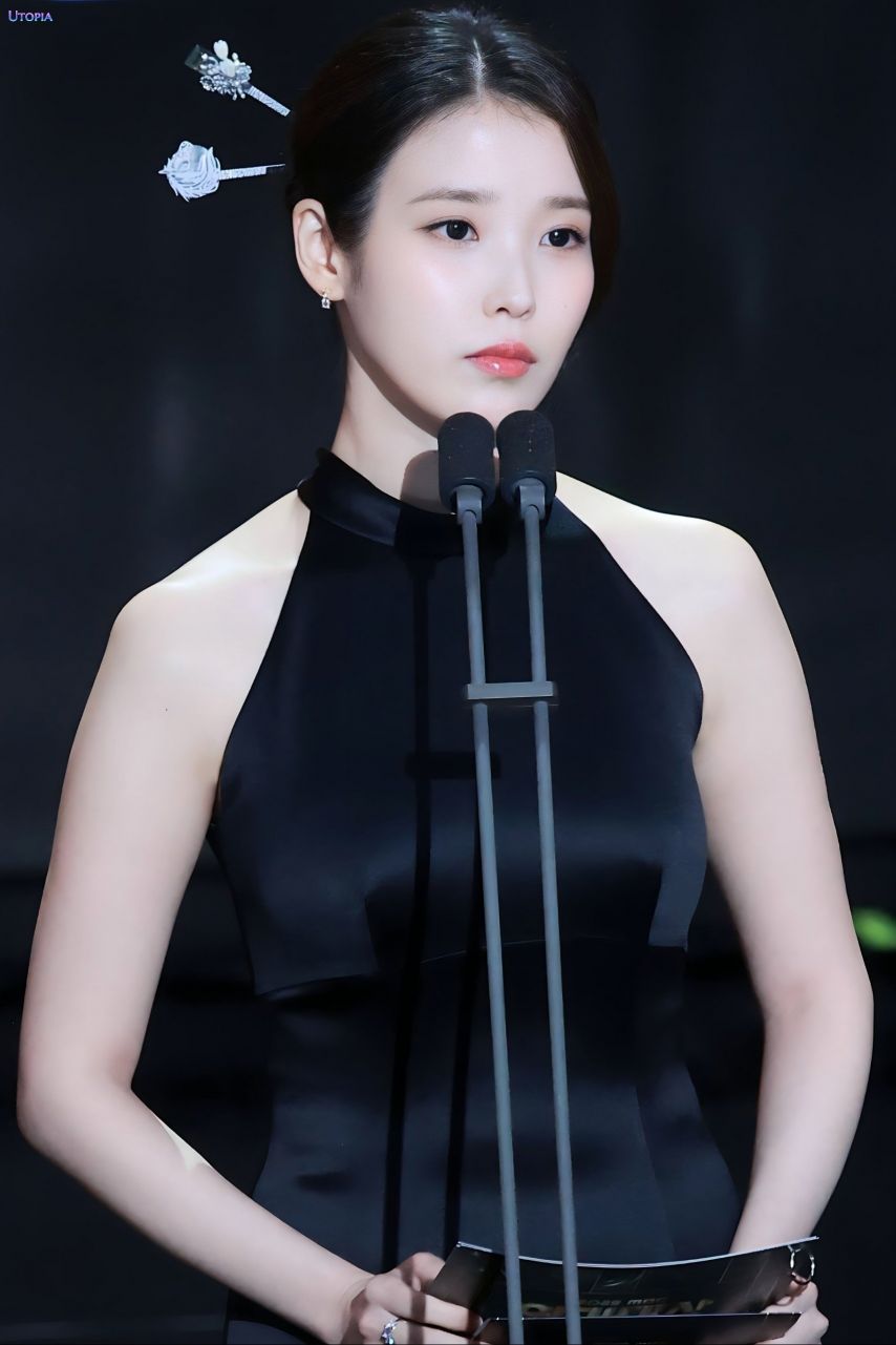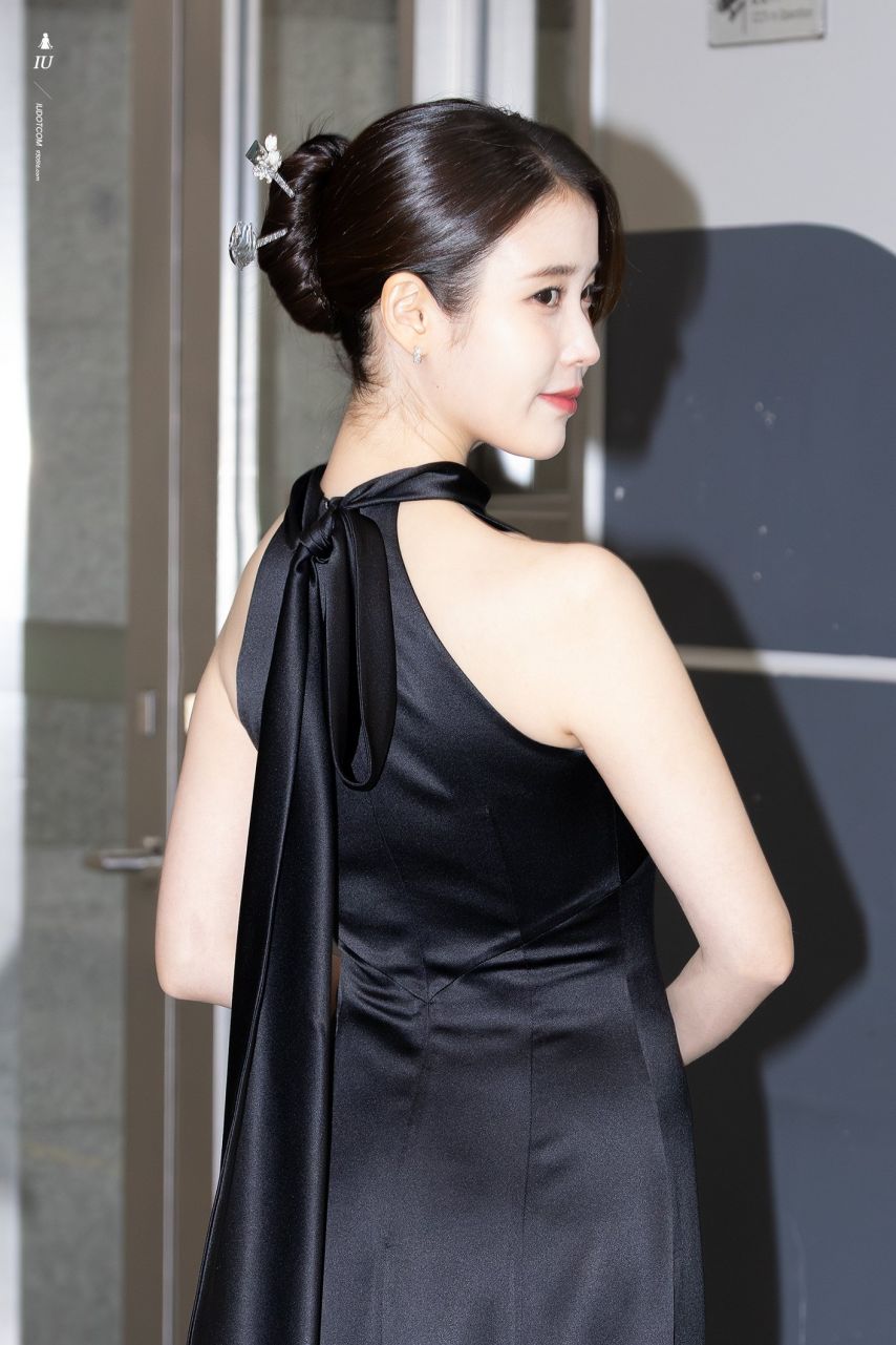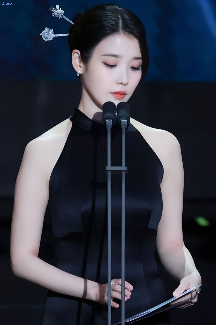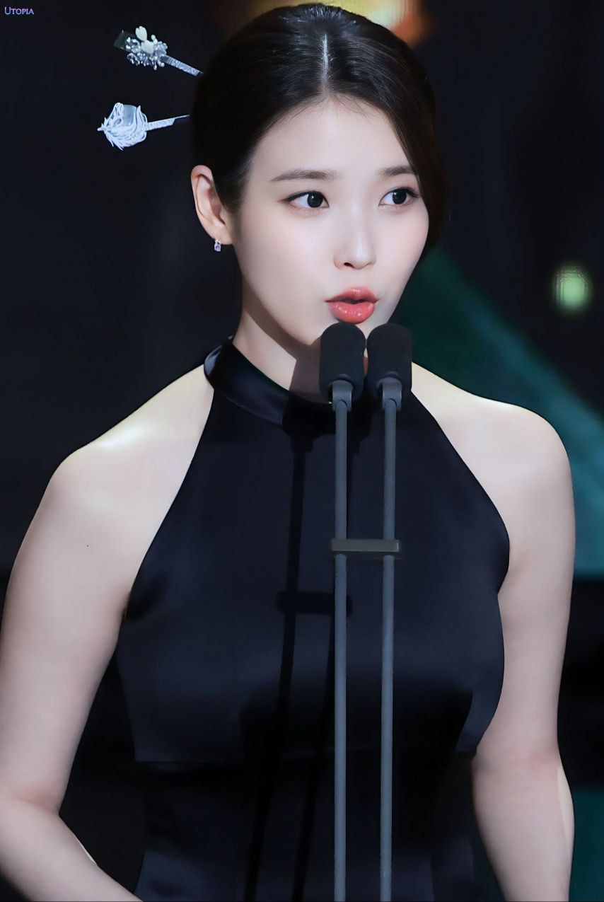 아이유 홀터넥 블랙 롱드레스 봉긋한 가슴 섹시한 자태 - 연기대상
