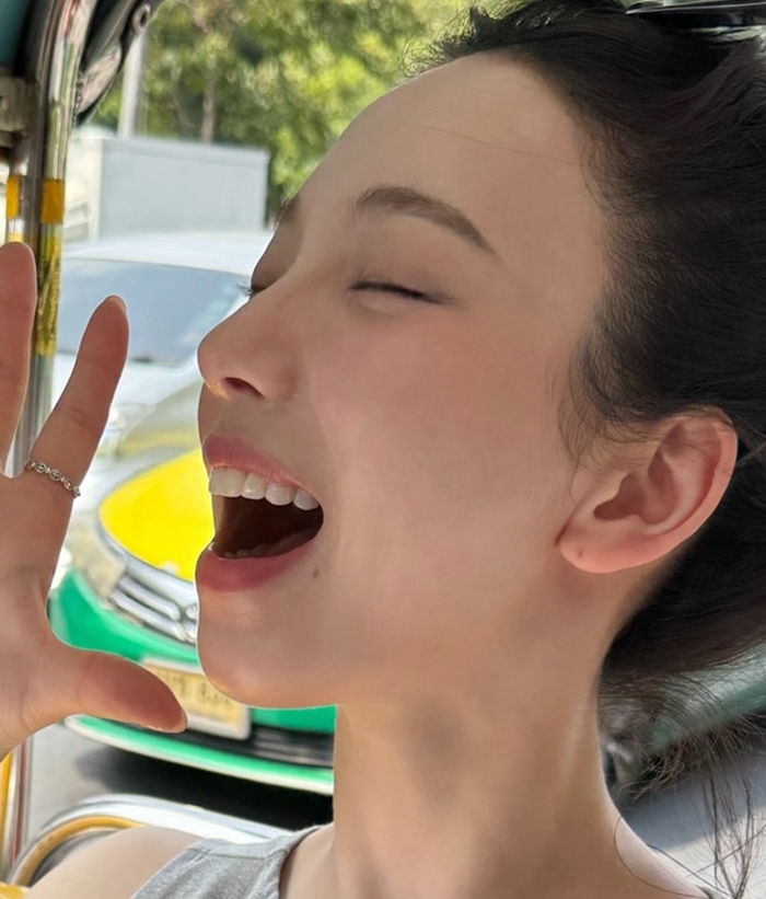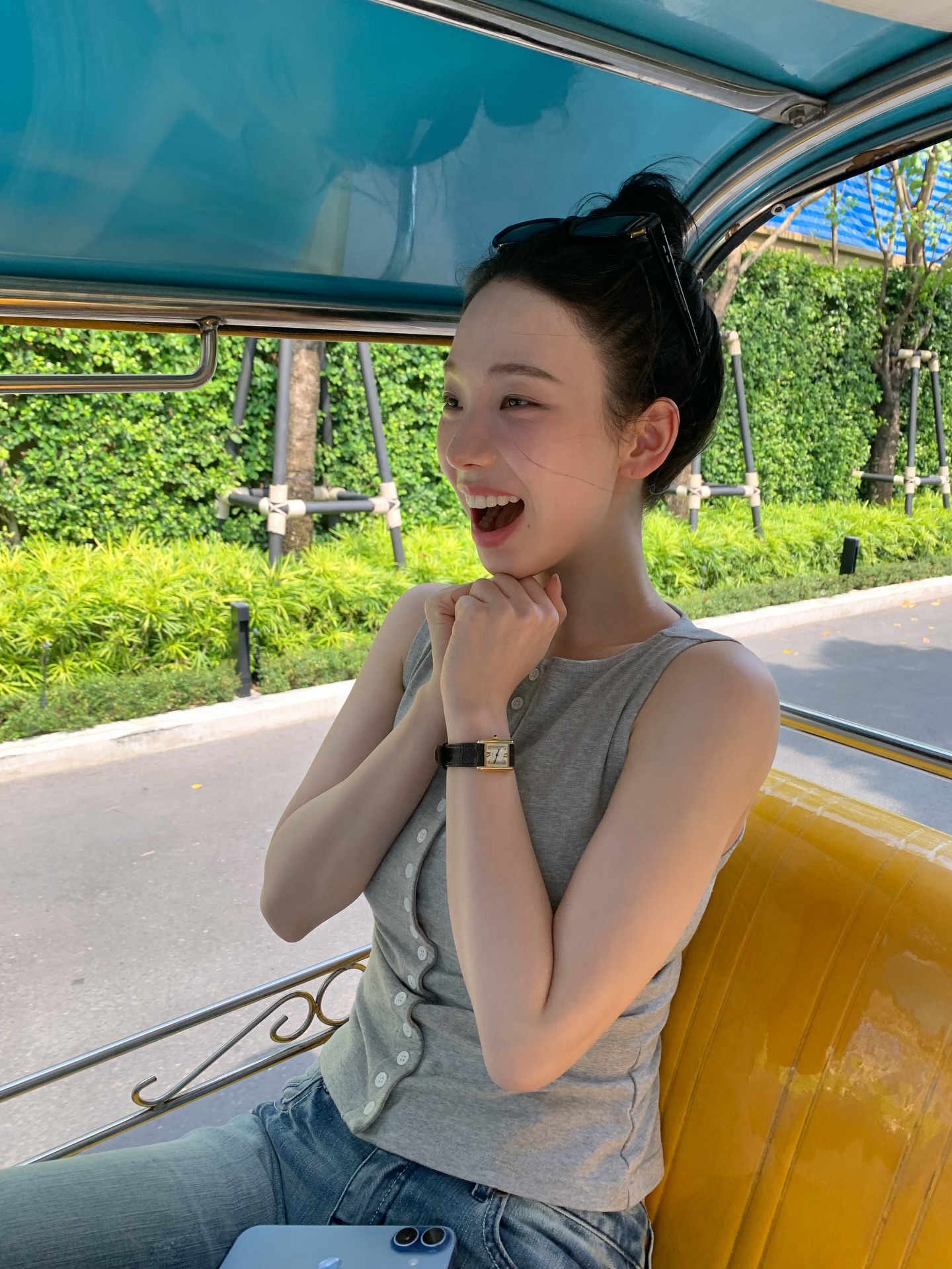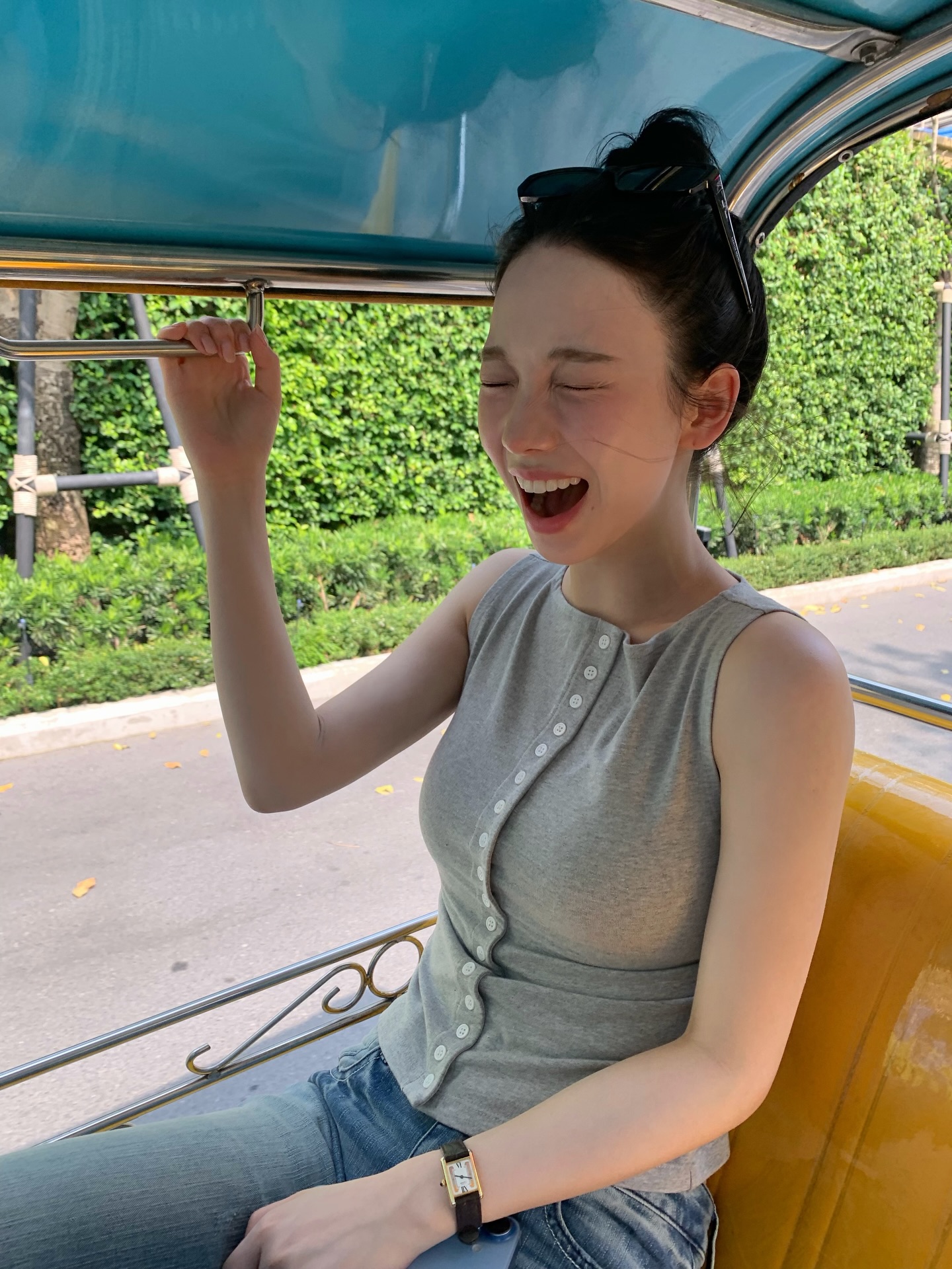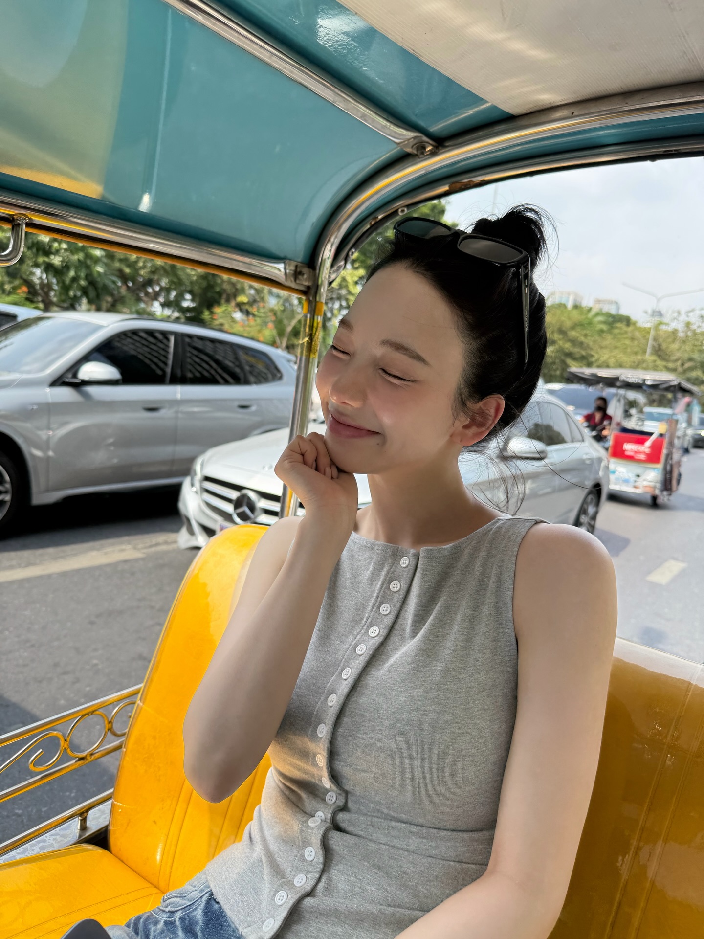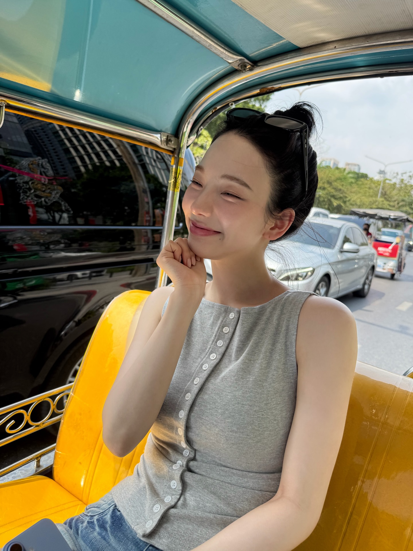 방콕 여행중인 카리나 시원한 회색 민소매 묵직한 가슴 볼륨감